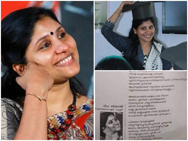 തൃശ്ശൂര് കേരളവര്മ കോളേജ് അധ്യാപികയും എഴുത്തുകാരിയുമായ ദീപാ നിശാന്ത് കവിത മോഷ്ടിച്ചുവെന്ന ആരോപണത്തില് അവര്ക്കെതിരെ സോഷ്യല് മീഡിയയില് പ്രതിഷേധം ശക്തമാകുന്നു. തന്റെ കവിതയായ അങ്ങനെയിരിക്കെ മരിച്ചു പോയി ഞാന്/ നീ എന്ന കവിത മോഷ്ടിക്കപ്പെട്ടു എന്ന ആരോപണമായി കവി എസ് കലേഷ് രംഗത്ത് എത്തുകയായിരുന്നു.