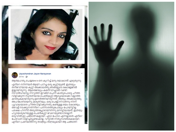 ഇതിനിടെ സിമിയുടെ ആത്മഹത്യയില് ആശ്ചര്യം പ്രകടിപ്പിച്ച് സിനിയുടെ ബാല്യകാല സുഹൃത്ത് എഴുതിയ ഫേസ്ബുക്ക് കുറിപ്പ് ഇപ്പോള് വൈറലാവുകയാണ്. ഫേസ്ബുക്ക് വഴി പരിചയപ്പെട്ട യുവാവുമായുള്ള ബന്ധം നാട്ടുകാര് അറിഞ്ഞതോടെയാണ് സിനി ആത്മഹത്യ ചെയ്തതെന്നാണ് പോലീസ് പറയുന്നത്.