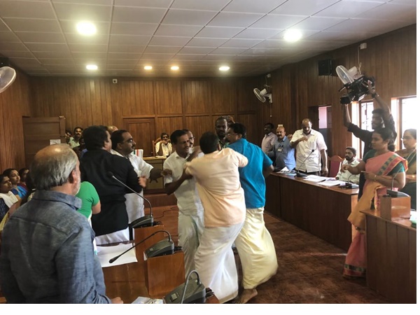 തളിപ്പറമ്പ് നഗരസഭ ബജറ്റ് അവതരണ യോഗത്തിനിടെ ഭരണ പ്രതിപക്ഷ അംഗങ്ങൾ തമ്മിൽ ഏറ്റുമുട്ടി
