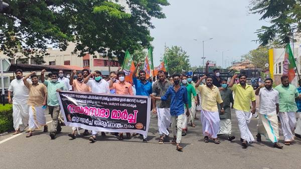 പൊലീസ് പ്രതിഷേധക്കാർക്ക് നേരെ കണ്ണീർവാതകവും ജലപീരങ്കിയും പ്രയോഗിച്ചു.ആറോളം പ്രവർത്തകർക്ക് പരിക്കേറ്റു. പരിക്കേറ്റവരെ പിന്നീട് ആശുപത്രിയിലേക്ക് മാറ്റി.യുവമോർച്ച സംസ്ഥാന ജില്ലാ നേതാക്കളായ ബി.എല്.അജേഷ്, അനുരാജ്, ബി.ജി.വിഷ്ണു,രാമേശ്വരം ഹരി, ആർ.സജിത്ത് തുടങ്ങിയവർ മാർച്ചിന് നേതൃത്വം നൽകി.