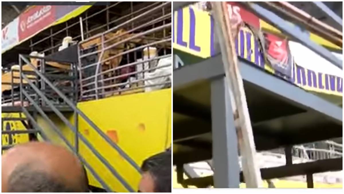 മൃദംഗ വിഷൻ എന്ന സംഘടനയുടെ നേതൃത്വത്തിൽ 12000 നർത്തകരുടെ ഭരതനാട്യ പരിപാടിയിൽ പങ്കെടുക്കാൻ എത്തിയപ്പോഴാണ് വി ഐ പി ഗാലറിയിൽ നിന്ന് എം എൽ എ താഴേക്ക് വീണത്. ഞായറാഴ്ച ആറരയോടെയാണ് സംഭവം.