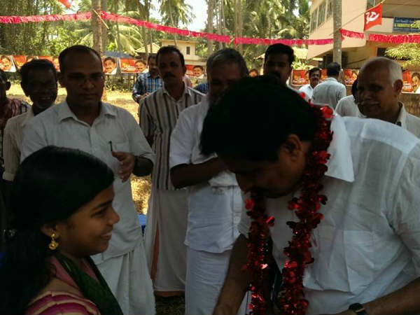 വി അബ്ദു റഹ്മാന് വോട്ടഭ്യര്ത്ഥനയുമായി റോഡിലിറങ്ങിയപ്പോള്.
