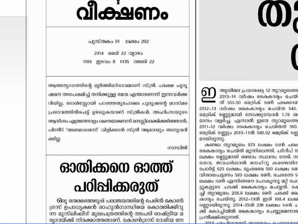 ഓതിക്കനെ ഓത്ത് പഠിപ്പിക്കരുത്:ചന്ദ്രികക്ക് മറുപടി