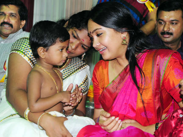 ശശി തരൂര് കുഞ്ഞിനെ അരിയില് ആദ്യാക്ഷരം കുറിപ്പിയ്ക്കുന്നു. സുനന്ദ പുഷ്കര് സമീപം.