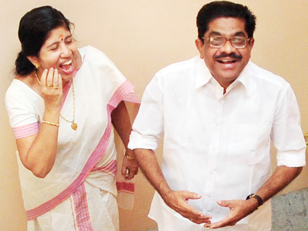 കെ പി സി സി പ്രസിഡണ്ടായി തിരഞ്ഞെടുക്കപ്പെട്ട വി എം സുധീരന് ഭാര്യ ലതയ്ക്കൊപ്പം.