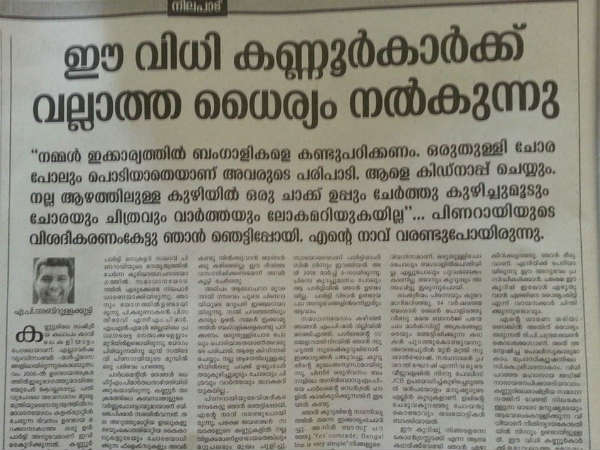 വീക്ഷണത്തില് പ്രസിദ്ധീകരിച്ച ലേഖനത്തില് നിന്ന് വാചകങ്ങള് കടമെടുത്താല്...