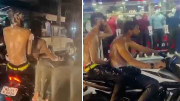 അര്ധ നഗ്നരായി സോപ്പ് തേച്ച് കുളിച്ചു കൊണ്ടായിരുന്നു ഇരുവരുടേയും ബൈക്കിലെ യാത്ര. സോഷ്യല് മീഡിയയില് പ്രചരിച്ച ഇതിന്റെ വീഡിയോ ശാസ്താംകോട്ട പൊലീസിന്റെ പക്കലും എത്തിയതോടെയാണ് കേസെടുത്തത്.