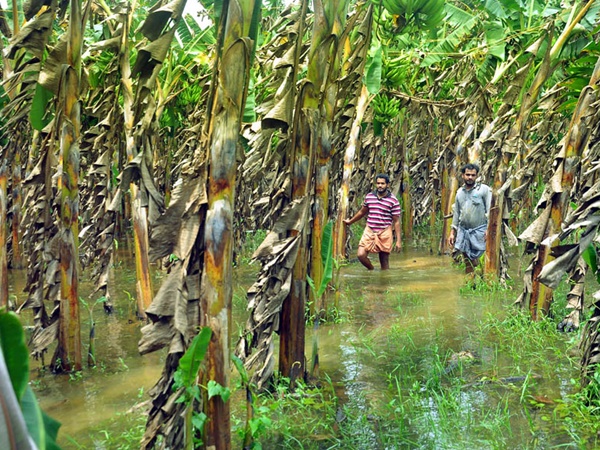 കുലച്ച് മൂപ്പെത്താത്ത കുലകളുള്ള വാഴത്തോട്ടത്തില് നിറയെ വെള്ളം കെട്ടി നില്ക്കുന്നതിനാല് വാഴകള് പഴുത്ത് തുടങ്ങിയിട്ടുണ്ട്. രണ്ട് ദിവസം കൂടി വെള്ളം ഈ നിലക്ക് നില്ക്കുകയാണെങ്കില് തോട്ടം പൂര്ണ്ണമായും നശിച്ചു പോവും. ഒരുവാഴക്ക് ഇരുന്നൂറ്റിയന്പതോളം രൂപ ചെലവായ കര്ഷകരുടെ അധ്വാനത്തിന്റെ കൂലി വേറെയും വരും. നേന്ത്രക്കുലക്ക് വിപണിയില് മാന്യമായ വില ലഭിക്കുന്ന അവസരമായതിനാല് ഒരു കുലക്ക് 500 മുതല് 600 രൂപ വരെ വിലലഭിക്കാവുന്ന കുലകളാണ് നശിക്കുന്നത്. കര്ഷകര് ലോണും മറ്റുവിധത്തിലുള്ള സാമ്പത്തിക സമാഹരണവും നടത്തി ആരംഭിച്ച കൃഷിയാണ് ഇപ്പോള് വെള്ളത്തിലായിരിക്കുന്നത്.