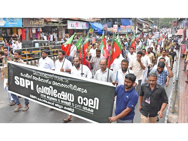 നഗരം യുദ്ധക്കളമായി മാറുന്ന പ്രതീതിയായിരുന്നു ഞായറാഴ്ച വടകരയിൽ ഉണ്ടായത്.വടകര ഡി.വൈ.എസ്.പി സി.ആർ.സന്തോഷ്,സി.ഐ.മാരായ ടി.മധുസൂദനൻ നായർ (വടകര)ദിനേശ് കോറോത്ത്(പയ്യോളി),ഉണ്ണികൃഷ്ണൻ(കൊയിലാണ്ടി)എസ്.ഐ.ജയൻ എന്നിവരുടെ നേതൃത്വത്തിൽ വൻ പോലീസ് സേനയും പ്രകടനം കടന്നു പോകുന്ന വഴിയിൽ ക്യാമ്പ് ചെയ്തിരുന്നു.അടക്കാത്തെരു ജങ്ക്ഷനിൽ നിന്നും ആരംഭിച്ച റാലി പുതിയ ബസ് സ്റ്റാൻഡ് പരിസരത്ത് സമാപിച്ചു.സി.പി.എമ്മിനും, പോലീസിനും,സർക്കാരിനുമെതിരെ കടുത്ത ഭാഷയിലാണ് റാലിയിൽ പങ്കെടുത്തവർ മുദ്രാവാക്യം വിളിച്ചത്. തുടർന്ന് നടന്ന വിശദീകരണ പൊതുയോഗം എസ്നി.ഡി.പി.ഐ.ജില്ലാ സെക്രട്ടറി ജലീൽ സഖാഫി ഉൽഘാടനം ചെയ്തു. മണ്ഡലം പ്രസിഡണ്ട് സാലിം അഴിയൂർ അധ്യക്ഷത വഹിച്ചു.ജില്ലാ സെക്രട്ടറി സി.പി.മുഹമ്മദലി,സവാദ് വടകര എന്നിവർ പ്രസംഗിച്ചു.പ്രകടനത്തിന് ജില്ലാ വൈസ് പ്രസിഡന്റ് വാഹിദ് ചെറുപ്പറ്റ,റസാക്ക് മാക്കൂല്, ടിപി മുഹമ്മദ്, നജീബ് അത്തോളി, ആര്എം റഹീംമാസ്റ്റര്, കബീര് തിക്കോടി, കെവിപി ഷാജഹാന്, ഷംസീര് ചോമ്പാല് എന്നിവർ നേതൃത്വം നല്കി.അനുമതിയില്ലാതെ പ്രകടനം നടത്തുകയും,ഗതാഗതം തടസ്സപ്പെടുത്തുകയും ചെയ്ത സംഭവത്തിൽ സാലിം അഴിയൂർ,റസാക്ക് മാക്കൂൽ,സവാദ് വടകര എന്നിവർ ഉൾപ്പടെ മുന്നൂറോളം പേർക്കെതിരെ വടകര പോലീസ് കേസ്സെടുത്തു.