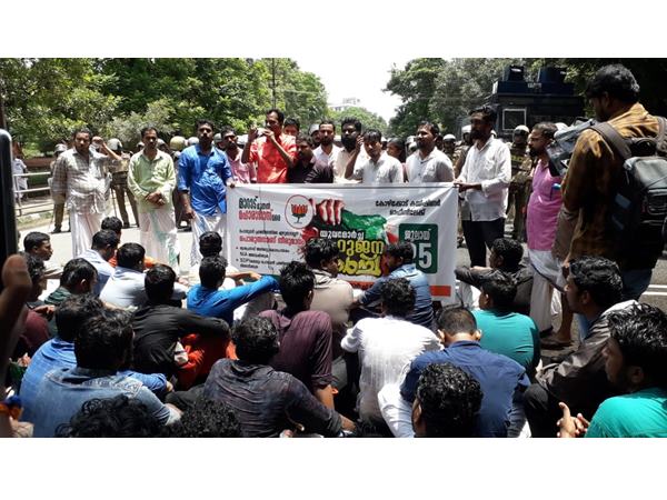 മുതലക്കുളത്തുനിന്നും ആരംഭിച്ച പ്രകടനം കമ്മീഷണര് ഓഫീസ് പരിസരത്ത് എത്തിയതോടെ പ്രവർത്തകർ പോലീസ് ബാരിക്കേഡ് തകർക്കാൻ ശ്രമിച്ചു. പൊലീസ് സംയമനം പാലിച്ചെങ്കിലും നിയന്ത്രണാധീതമായതിനെ തുടർന്ന് ജലപീരങ്കി പ്രയോഗിച്ചു. പിരിഞ്ഞ് പോകാതെ പ്രവര്ത്തകര് കമ്മീഷണര് ഓഫീസിനു മുന്നില് കുത്തിയിരുന്നു. തുടര്ന്ന് പ്രതിഷേധ മാര്ച്ച് യുവമോര്ച്ച സംസ്ഥാന പ്രസിഡന്റ് അഡ്വ. കെ.പി. പ്രകാശ്ബാബു ഉദ്ഘാടനം ചെയ്തു. കേരളത്തിലെ സർക്കാരും പൊലീസും തീവ്രവാദികൾക്ക് കീഴടങ്ങിയിരിക്കുകയാണെന്ന് അദ്ദേഹം പറഞ്ഞു.