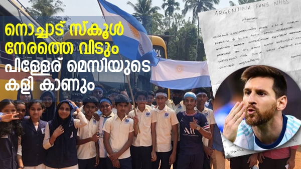 ഇന്ന് 3.30 ന് ലോകകപ്പില് അർജന്റീന-സൌദി അറേബ്യ മത്സരം നടക്കുന്നതിനാല് സ്കൂള് നേരത്തെ വിടണമെന്ന് ആവശ്യപ്പെട്ട് ഒമ്പതാം ക്ലാസില് പഠിക്കുന്ന അർജന്റീന ആരാധകരായ വിദ്യാർത്ഥികള് കഴിഞ്ഞ ദിവസം പ്രധാന അധ്യാപകന് ഒരു നിവേദനം നല്കിയിരുന്നു. നൂറോളം വിദ്യാർത്ഥികളാണ് ഈ നിവേദനത്തില് ഒപ്പിട്ടിരുന്നത്.