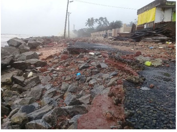 മുകച്ചേരി ഭാഗത്ത് കടലാക്രണമത്തില് തകര്ന്ന റോഡ്