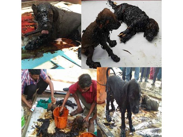 ചെന്നു നോക്കിയപ്പോള് മറിഞ്ഞ ടാര് വീപ്പയില് നിന്നും പരന്നൊഴുകിയ ടാറില് ശരീരമൊട്ടാകെ ഒട്ടിയ പട്ടിക്കുട്ടികളെയാണ് കണ്ടത്.ഇവയെ രക്ഷിക്കാന് ഏറെ പരിശ്രമിച്ചെങ്കിലും കഴിഞ്ഞില്ല. ഒടുവില് ഹ്യൂമന് സൊസൈറ്റി ഇന്റര്നാഷണലിന്റെ പ്രവര്ത്തകരെത്തി പട്ടിക്കുട്ടികളെ ടാറില് നിന്നും വേര്പെടുത്തി. കൂടുതല് പരിചരണത്തിനും ചികിത്സക്കുമായി തള്ളപ്പട്ടിയേയും കുട്ടികളേയും നിലമ്പൂരിലെ കേന്ദ്രത്തിലേക്ക് കൊണ്ടുപോയി.