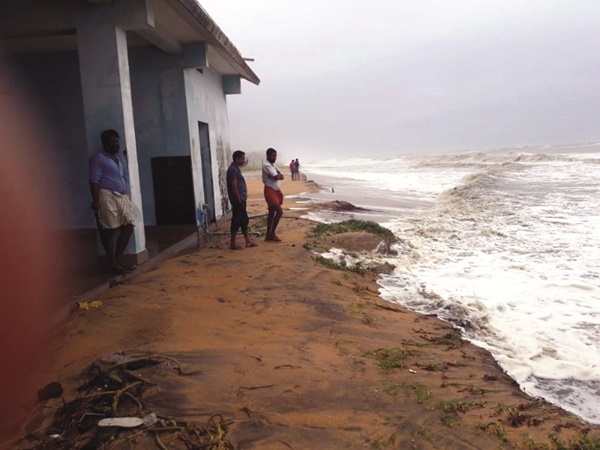 അഴിമുഖം മുതല് എത്തായ് ബീച്ച് വരെയുള്ള സീവാള് റോഡ് കടലേറ്റത്തില് പൂര്ണമായും മണല്മൂടി. പ്രദേശത്ത് പതിനഞ്ച് വീടുകളാണ് വെള്ളക്കെട്ടിലായത്. ഇതില് ആറുവീടുകള് ഏതുസമയവും കടലെടുക്കുമെന്ന സ്ഥിതിയിലാണ്. എത്തായ് ബീച്ചില് ഈച്ചരന് ചന്ദ്രന്റെ വീട് പൂര്ണമായും തകരുമെന്ന സ്ഥിതിയിലാണ്. രണ്ടിടത്തായി കടല്ക്ഷോഭത്തില് തകര്ന്നത് തീരത്തേക്കുള്ള കടല്വെള്ളത്തിന്റെ ഒഴുക്ക് വര്ധിപ്പിച്ചു. പഴയ സാഗര് ക്ലബ്ബിന് കിഴക്കുഭാഗത്തെ പതിനഞ്ചോളം വീടുകള് കനത്തവെള്ളക്കെട്ടിലായി. എറിയാട് മേഖലയില് ജനജീവിതം ദുസ്സഹമാകുകയാണ്. ടിപ്പു സുല്ത്താന് റോഡിന് പടിഞ്ഞാറുവശം ജനവാസ കേന്ദ്രങ്ങള് ഏത് നിമിഷവും വെള്ളം നിറയുമെന്ന അവസ്ഥയിലാണ്. എറിയാട് ചന്ത, ആറാട്ടുവഴി, മണപ്പാട്ട് ചാല്, ലൈറ്റ് ഹൗസ് പ്രദേശങ്ങളിലാണ് കടലാക്രമണം രൂക്ഷമായി അനുഭവപ്പെടുന്നത്.