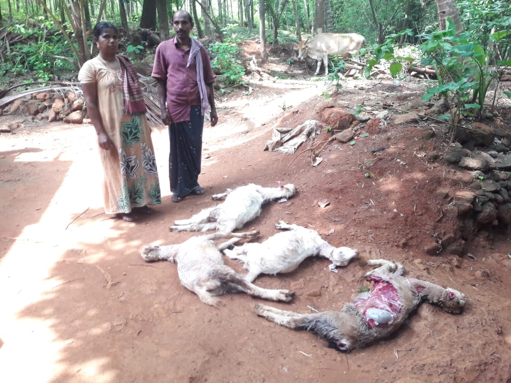 ചാലക്കുടി പരിയാരം പഞ്ചായത്തിലെ കുറ്റിക്കാട് പ്രദേശത്ത് രണ്ട് ആടുകളെ ചെന്നായ്ക്കൂട്ടം ആക്രമിച്ചുകൊന്നു. കരിപ്പായി ജോസിന്റെ ആടുകളെയാണ് വ്യാഴാഴ്ച പകല് നാലരയോടെ ചെന്നായ്ക്കൂട്ടം ആക്രമിച്ചത്. ഇവിടെ തുടര്ച്ചയായി ആടുകളെ ചെന്നായ്ക്കള് ആക്രമിക്കുന്നതായി പരിസരവാസികള് പറഞ്ഞു. മൂന്നു മാസത്തിനിടയില് ഏഴാമത്തെ ആടുകളെ ചെന്നായ്ക്കള് കൊന്നു. വനപാലകരും വാര്ഡ് മെമ്പര് അജിത ലക്ഷ്മണനും സ്ഥലത്തെത്തി. കര്ഷകര്ക്ക് ന്യായമായ നഷ്ടപരിഹാരം നല്കാന് നടപടി ഉണ്ടാകണമെന്ന് വാര്ഡ് മെമ്പര് ആവശ്യപ്പെട്ടു.