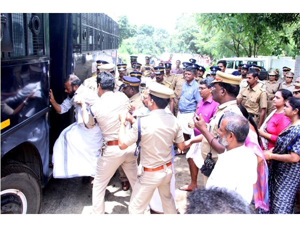 പിന്നീട് തളിക്കുളം കൊപ്രക്കളത്ത് ആക്ഷന് കൗണ്സില് പ്രവര്ത്തകര് അളവെടുപ്പ് തടഞ്ഞു.അവിടെ നിന്ന് മൂന്ന് പേരെയും വലപ്പാട് പോലീസ് അറസ്റ്റ് ചെയ്തു. നാട്ടികയിലും പ്രതിഷേധിക്കാനെത്തിയ മൂന്ന് പേരെ അറസ്റ്റ് ചെയ്തു.വലപ്പാട് ടി കെ ഷൈജുവിന്റെ നേതൃത്വത്തില് വിവിധ സ്റ്റേഷനുകളില് നിന്നെത്തിയ കൂടുതല് പോലീസ് സന്നാഹത്തോടെ ഉച്ചയ്ക്ക് ശേഷം അളവെടുപ്പ് പുനരാരംഭിക്കുകയായിരുന്നു.അറസ്റ്റ് ചെയ്തവരെ വൈകീട്ട് വിട്ടയച്ചു.ഡെപ്യൂട്ടി കലക്ടര് ഐ പാര്വ്വതീദേവി, ലെയ്സണ് ഓഫീസര് എ കെ വാസുദേവന്, തഹസില്ദാര്മാരായ ഷംസുദ്ദീന്, ലിറ്റി, രേവ, സുരേഷ് എന്നിവരുടെ നേതൃത്വത്തില് നാല് യൂണിറ്റുകളായി ആരംഭിച്ച അളവെടുപ്പ് പിന്നീട് മൂന്ന് യൂണിറ്റായി തുടര്ന്ന് ബൈപാസ് ഒഴികെ ഏങ്ങണ്ടിയൂര് എലൈറ്റ് പടി മുതല് നാട്ടിക വരെ അളന്നു.