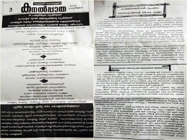 കല്പ്പറ്റ: വയനാട് പ്രസ്സ്ക്ലബ്ബില് മാവോയിസ്റ്റ് ബുള്ളറ്റിന്. നാടുകാണി പി എല് ജി എ ബുള്ളറ്റിനായ കനല്പ്പാതയാണ് പ്രസ്സ്ക്ലബ്ബില് കണ്ടെത്തിയത്. മഹാപ്രളയദുരന്തം ഭരണകൂടത്തിന്റെ സൃഷ്ടിയാണെന്നും, വന്കിട ഡാമുകള് പൊളിച്ചുമാറ്റണമെന്നും ബുള്ളറ്റില് ആഹ്വാനം ചെയ്യുന്നു. പശ്ചിമഘട്ടത്തെ സംരക്ഷിക്കുക, ജനങ്ങള്ക്ക് മതിയായ അളവില് റേഷന് സാധനങ്ങള് വിതരണം ചെയ്യുക എന്നിങ്ങനെ നിരവധി ആവശ്യങ്ങള് ബുള്ളറ്റിന് മുന്നോട്ട് വെക്കുന്നുണ്ട്.