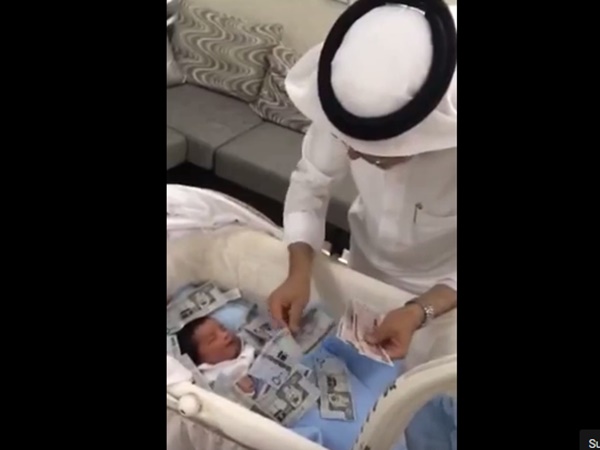 സൗദി: സ്വര്ണ തളികയില് ജനനം എന്നൊക്കെ കേട്ടിട്ടുണ്ടാകും. എന്നാല് നോട്ടില് പൊതിഞ്ഞ ജനനത്തിന്റെ കഥ ആരും കേട്ടു കാണില്ല. സൗദ്യക്കാരനാണ് പേരകുഞ്ഞിനെ നോട്ടില് പൊതിഞ്ഞ് മുത്തച്ഛനായത്തിന്റെ സന്തോഷം പ്രകടിപ്പിച്ചത്.