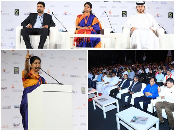 ഷാർജ: മുപ്പത്തിയേഴാമത് ഷാർജ അന്താരാഷ്ട്രപുസ്തകമേളയിൽ ഡിഎംകെ നേതാവും കവയിത്രിയുമായ കനിമൊഴി പ്രഭാഷണം നടത്തി. ഷാർജ എക്സ്പോ സെന്ററിലെ ബാൾ റൂമിൽ വൈകുന്നേരം 6 മുതൽ 8 വരെ നടന്ന പരിപാടിയിൽ സമകാലിക ഇന്ത്യയുടെ സംസ്കാരത്തിലെ രാഷ്ട്രീയം അവർ വിവരിച്ചു. പെരിയോറും മറ്റ് നവോത്ഥാനനായകരും സമൂഹത്തിൽ കൊണ്ടുവന്ന മാറ്റങ്ങൾ ഇപ്പോൾ അപകടഭീഷണി നേരിടുകയാണെന്ന് കനിമൊഴി പറഞ്ഞു.