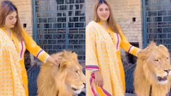 ശ്വാസമടക്കി പിടിക്കാതെ കാണാനാവില്ല; കാട്ടിലെ രാജാവിനെ താലോലിച്ച് യുവതി, പിന്നീട് സംഭവിച്ചത്