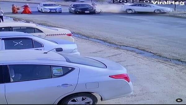 ഇവരെ തട്ടാതിരിക്കാനായി വെട്ടിച്ചൊഴിച്ച കാറുകള് പരസ്പരം കൂട്ടിയിടിക്കുകയായിരുന്നു. വളരെ കഷ്ടിച്ച് വാഹനം വെട്ടിച്ചൊഴിയുന്നത് ദൃശ്യങ്ങളില് നിന്ന് വ്യക്തമാണ്. ദൈവ ഭാഗ്യം കൊണ്ട് മാത്രമാണ് ഈ സ്ത്രീയെ വണ്ടിയിടിക്കാതെ രക്ഷപ്പെട്ടത്. സിസിടിവി ദൃശ്യങ്ങളാണ് പുറത്തുവന്നത്. വാഹനങ്ങളെല്ലാം ഇടിച്ച ശേഷം ഇതേ സ്ത്രീ തിരിച്ച് മറ്റ് രണ്ട് സ്ത്രീകളുടെ അടുത്തേക്ക് കൂളായി നടന്നുവരുന്നതും ദൃശ്യങ്ങളില് കാണാം. ഇവര് അപകടത്തെയൊന്നും കാര്യമായി എടുത്തില്ലെന്ന് വ്യക്തമാണ്. ഇത്രയും അപകടമുണ്ടാക്കാന് കാരണം താനാണെന്ന ഭാവമൊന്നും ആ മുഖത്തിലായിരുന്നു.