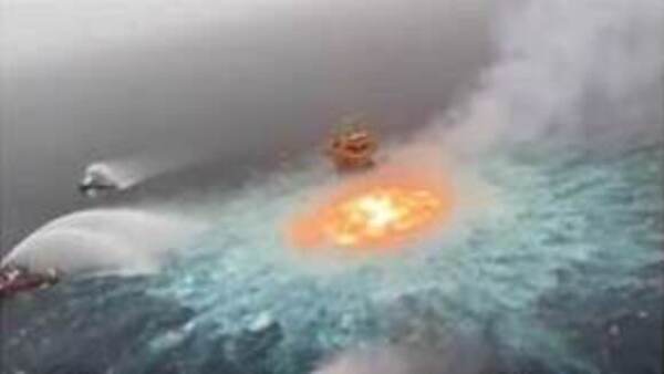 ഓറഞ്ച് നിറത്തിലുള്ള തീജ്വാലകള് വെള്ളത്തില് നിന്ന് പൊങ്ങി ഉയരുന്നതാണ് ഈ വീഡിയോ ക്ലിപ്പിലുള്ളത്. അഗ്നിപര്വതത്തില് നിന്ന് ല ാവ തുപ്പുന്നത് പോലെയുണ്ട്. നാല് ബോട്ടുകള് ഈ തീജ്വാലകള് ചുറ്റും നിന്ന്, ഇത് കെടുത്താന് ശ്രമിക്കുന്നുണ്ട്. സോഷ്യല് മീഡിയ സൈറ്റായ റെഡിറ്റിലാണ് ഈ വീഡിയോ ഷെയര് ചെയ്തത്. മണിക്കൂറുകള്ക്കുള്ളില് ഇത് വൈറലായി. സമുദ്രത്തിന്റെ അടിയിലൂടെ കരയിലേക്ക് ബന്ധിപ്പിക്കുന്നതാണ് ഈ പൈപ്പ് ലൈന്. പ്രകൃതി വാതകം അടക്കമുള്ളവ എത്തിക്കാനാണ് ഈ മാര്ഗം സ്വീകരിച്ചിരിക്കുന്നത്.