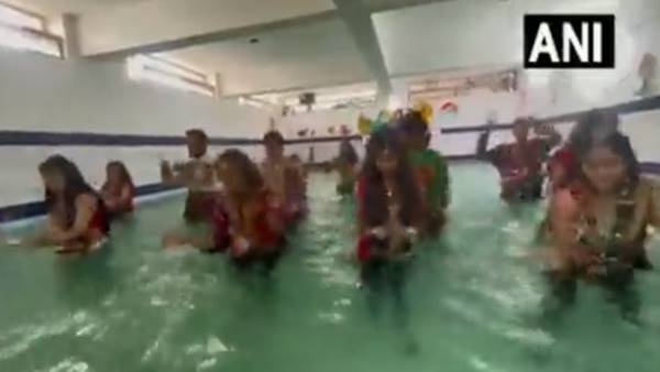 Viral Video: ഇതാണ് പൂളിലെ 'ഗര്ബ', ഇത്രയ്ക്കും വേണ്ടായിരുന്നെന്ന് സോഷ്യല് മീഡിയ, പരിഹാസം