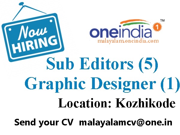വണ്ഇന്ത്യ: കോഴിക്കോട്ടേക്ക് സബ് എഡിറ്റേഴ്സിനെയും ഗ്രാഫിക് ഡിസൈനറെയും ആവശ്യമുണ്ട്