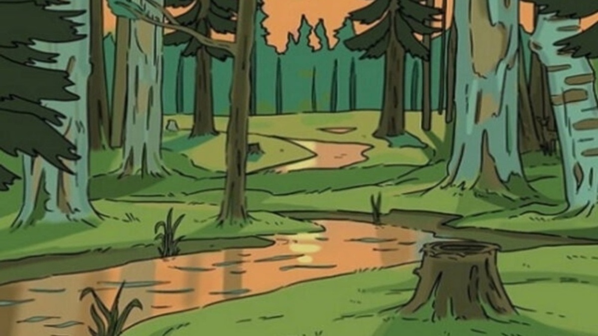 ഈ വനത്തിന് നടുവിലൂടെ ഒരു ചെറിയ നദി ഒഴുകുന്നുണ്ട്. അത് നോക്കിയാല് കാണാം. ദൂരെയായി സൂര്യന് ജ്വലിച്ച് നില്ക്കുന്നതും കാണാം. ഇതൊന്നുമല്ലാതെ ഈ ചിത്രത്തില് എന്തെങ്കിലുമുണ്ടോയെന്നാണ് കണ്ടുപിടിക്കേണ്ടത്.