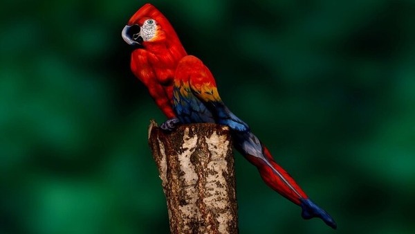 എന്തായാലും കുറച്ച് ക്ലൂ തരാം. സൂക്ഷിച്ച് നോക്ക് ചിത്രത്തിലേക്ക്. ചിലപ്പോള് നിങ്ങള്ക്ക് കണ്ടെത്താന് സാധിച്ചേക്കും. ഇനിയും കഴിഞ്ഞിട്ടില്ല അല്ലേ. എന്തായാലും ഇത് കുറച്ച് കടുപ്പമാണ്. ഇതിലെവിടെയാണ് യുവതിയുള്ളത് എന്ന് ആരും അദ്ഭുതപ്പെട്ട് നോക്കാം. ഈ പഞ്ചവര്ണ തത്ത തന്നെയാണ് ഈ ചിത്രത്തിലെ ഒപ്ടിക്കല് ഇല്യൂഷന്. ഈ തത്ത തന്നെ ഒരു പെണ്ണാണ്. തത്തയ്ക്കുള്ളില് മറഞ്ഞിരിക്കുകയാണ് ഇത്. ഇറ്റാലിയന് ബോഡി പെയിന്റര് ജൊഹാനസ് സ്റ്റ്യുട്ടറാണ് ഈ ചിത്രത്തിന്റെ മാസ്റ്റര് ക്രിയേറ്റര്.