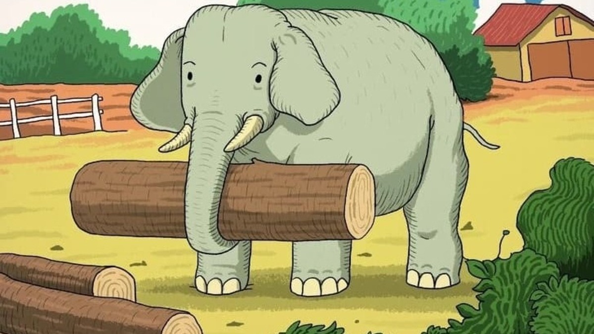 ചിത്രത്തില് എവിടെയോ അവന് ഒളിഞ്ഞിരിക്കുന്നുണ്ട്. ചിത്രത്തില് എന്തൊക്കെയുണ്ടെന്ന് ആദ്യം നോക്കൂ. ആന തടിപിടിക്കുന്നതിന്റെ അടുത്ത് കുറ്റിക്കാട് കാണാം. ദൂരെയായി ഒരു വീടും കാണാം. ഇതൊരു വിജനമായ പ്രദേശമാണെന്ന് ഒറ്റ നോട്ടത്തില് മനസ്സിലാക്കാം.