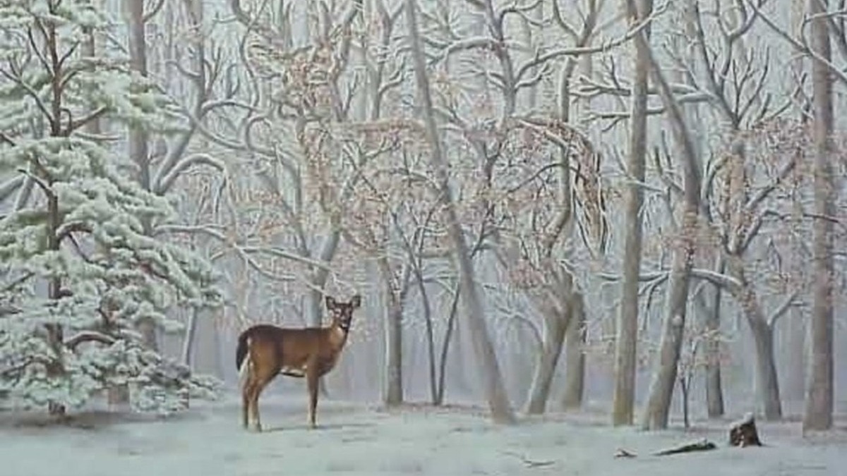 അതിന് നടുവിലായി ഒരു മാനിനെയും കാണാം. നല്ല ഭംഗിയിലാണ് ഈ വനവും, മാനുമെല്ലാം ഉള്ളത്. ഇതിന് ചുറ്റും നോക്കൂ. മഞ്ഞിനാല് ചുറ്റപ്പെട്ട് കിടക്കുകയാണ് എല്ലാം. മരങ്ങളെല്ലാം മഞ്ഞില് പുതഞ്ഞ് കിടക്കുകയാണ്. ഒരുപാട് പ്രത്യേകതള് ഈ ചിത്രത്തിലുണ്ടെന്ന് പറയാം.