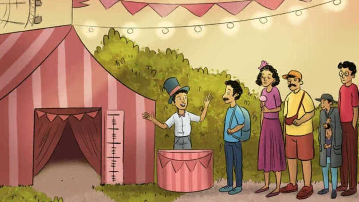 ചിത്രത്തിലേക്ക് ശരിക്കുമൊന്ന് നോക്കൂ. എന്താണ് കാണാന് സാധിക്കുന്നത്. ഒരു സര്ക്കസ് കൂടാരമാണ് മുന്നില് കാണുന്നത്. അതിന്റെ വാതില് തുറന്നിട്ടിരിക്കുകയാണ്. അതിന് മുന്നില് കുറേ ആളുകളുണ്ട്. നീളന് തൊപ്പി ധരിച്ച ഒരു യുവാവിനെ ചിത്രത്തില് കാണാം. അതൊരു കുട്ടിയെ പോലെയുണ്ട് കാണാന്.