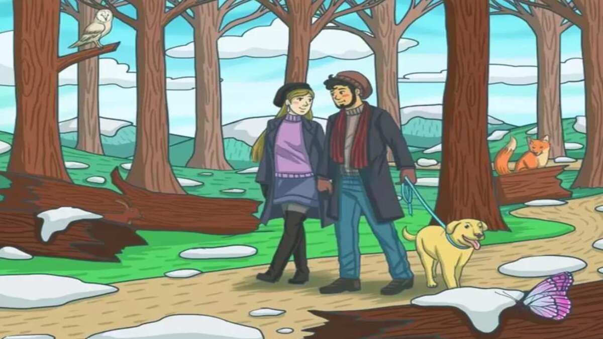 ഈ കാട്ടില് പല വന്യജീവികളുമുണ്ട്. മരകഷ്ണങ്ങള് അവിടവിടെയായി മുറിച്ചിട്ടിരിക്കുന്നത് കാണാം. ഇവര് നടക്കുന്നത് കുറച്ച് പിന്നിലായി ഒരു കുറുക്കനെ കാണാം. അത് ഇവരെ നോക്കിയിരിക്കുകയാണ്. പക്ഷേ മരത്തിലേക്ക് നോക്കിയാല് ഒരു മൂങ്ങയെ കാണാം. ഇടത് വശത്തായി ദമ്പതിമാര്ക്ക് അരികിലുള്ള മരത്തിലാണ് ഈ മുങ്ങി ഇരിക്കുന്നത്. വലത് വശത്തായി ഒരു ചിത്രശലഭത്തെയും കാണാം.