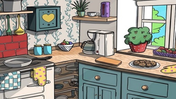 ഈ അടുക്കളയൊന്ന് ശ്രദ്ധിച്ച് നോക്കൂ. എന്തൊക്കെ കാണാന് സാധിക്കുന്നുണ്ടെന്ന് ആദ്യം നോക്കൂ. ഒരുപാട് ഉപകരണങ്ങള് കാണാം. ഒരു കോഫി മേക്കര് മൂലയ്ക്കിരിക്കുന്നത് കാണാം. സ്പൂണുകള് തൂക്കിയിട്ടിട്ടുണ്ട്. പ്ലേറ്റുകള് ഒരുവശത്ത് കാണാം. ഒരു പാനും കാണാനം. പ്ലേറ്റില് എന്തോ ഒരു ഭക്ഷണ സാധനമുണ്ട്. തൊട്ടപ്പുറം പഴങ്ങള് നിറച്ചുവെച്ചിരിക്കുന്നതായും കാണാം. സമീപത്ത് തന്നെയുള്ളത് ബ്രെഡ് ആണോ നമുക്ക് തോന്നാം.