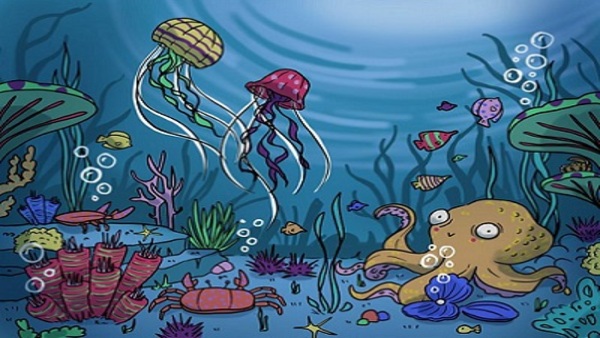 ഇനി ഈ ചിത്രം നോക്കൂ. പറഞ്ഞ് കേട്ടതിനേക്കാള് മനോഹരമാണ് സമുദ്രത്തിനടിത്തട്ട്. എന്തൊരു ഭംഗിയാണ് ഈ ചിത്രത്തിന്. നോക്കി നിന്ന് പോകും അതിന്റെ ഭംഗി. നമ്മുടെ മുന്നില് തന്നെ ഒരുപാട് കാര്യങ്ങള് അതില് കാണാന് കഴിയുന്നുണ്ട്. ധാരാളം മത്സ്യങ്ങള് മുന്നിലുണ്ട്. ഒരു ഞണ്ടിനെ മുന്നില് കാണാം. നല്ല കളര്ഫുളായിട്ടുള്ള മറ്റ് മീനുകള് നീന്തി തുടിക്കുന്നതും ഇതില് കാണാം. മനോഹരമായ കടല് ചെടികളും ധാരാളം ഈ ചിത്രത്തിലുണ്ട്. ഒരു നീരാളിയെ മുന്നില് തന്നെ കാണാം. ഇത് ഒരുപക്ഷേ ഇരപിടിക്കാനായി കാത്തിരിക്കുന്നതാണെന്ന് കണ്ടാല് തോന്നും.