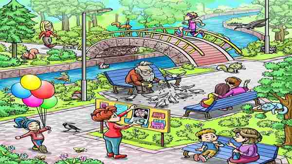 ഒരു പെണ്കുട്ടിയെയും ഈ ചിത്രത്തില് കാണാന് സാധിക്കും. ഈ കുട്ടി ബലൂണും പിടിച്ച് സന്തോഷത്തോടെ നടന്നുപോവുകയാണ്. ഒരു ആണ്കുട്ടി ഐസ്ക്രീം ആസ്വദിച്ച് കഴിക്കുന്നതും കാണാം. ഈ ആണ്കുട്ടിക്കൊപ്പം ഒരു അമ്മയും ബെഞ്ചില് ഇരിക്കുന്നതും ചിത്രത്തില് കാണാം. എന്നാല് ഇതിനിടയിലും ഒരു സ്ത്രീ ആകെ വിഷമത്തിലാണ്. അവരുടെ നായയെയാണ് കാണാതായത്. ഐസ്ക്രീം കഴിക്കുന്ന കുട്ടിയുടെ അടുത്തായി അവര് നില്ക്കുന്നുണ്ട്.
