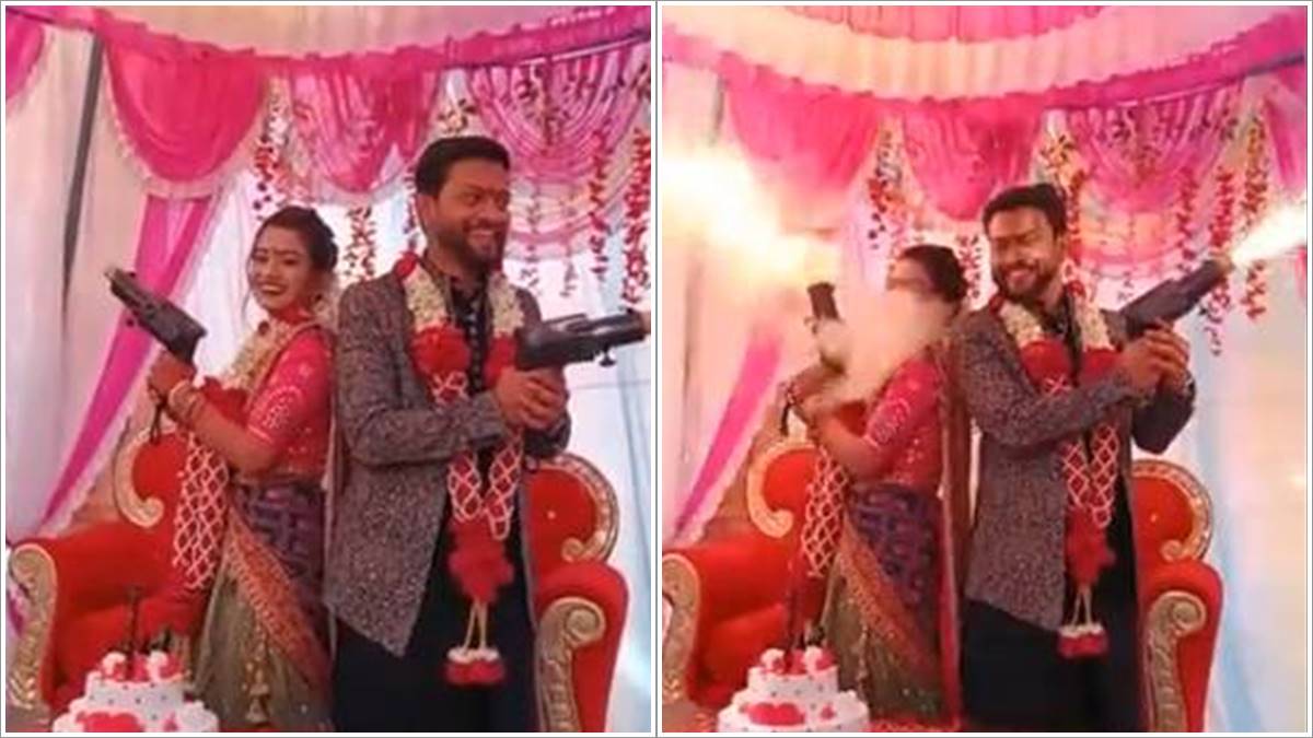 മഹാരാഷ്ട്രയിലെ ജുന്നറിലാണ് സംഭവം നടന്നത്. വിവാഹത്തിന് ശേഷം സന്തോഷത്തോടെ ഫോട്ടോയ്ക്ക് പോസ് ചെയ്യുകയായിരുന്നു വധുവും വരനും. ഫോട്ടോ ഒന്ന് അടിപൊളിയാക്കാന് ഇവര് ചെയ്ത കാര്യങ്ങളാണ് ഇവര്ക്ക് വെല്ലുവിളിയായത്. ഫോട്ടോ ഒരു രസമുള്ളത് ആക്കാന് രണ്ട് പേരും കയ്യില് തോക്ക് പിടിച്ചു. ഈ തോക്ക് പൊട്ടിക്കുന്ന സമയത്തുണ്ടായ തീ വധുവിന്റെ മുഖത്തേക്ക് പടരുകയായിരുന്നു.