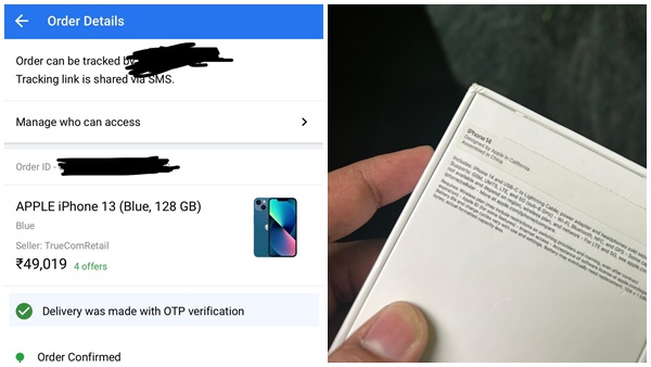 തെളിവായി ഫ്ലിപ്കാര്ട്ടില് നിന്നുള്ള ഓര്ഡര് വിശദാംശങ്ങളും അശ്വിന് ട്വിറ്ററിൽ പങ്കിട്ടുണ്ട്. ഐഫോണ് 13 ന്റെ 128 ജിബി ആയിരുന്നു ഓർഡർ ചെയ്തത്. എന്നാൽ ഫ്ലിപ്കാര്ട്ടിന്റെ വെരിഫിക്കേഷന് സംവിധാനം ഉപയോഗിച്ച് വെരിഫൈ ചെയ്ത് എത്തിച്ച ബോക്സില് ഉള്ളത് ഐഫോണ് 14 ആണ്.