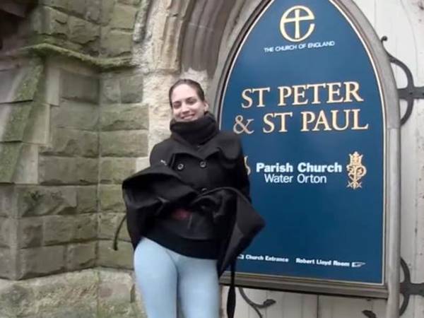 ഹംഗേറിയന് അശ്ലീല നടിയായാ ലെയന് പാര്ക്കര് ആണ് ഈ വീഡിയോയില് ഉള്ളത്. പള്ളിയുടെ ബോര്ഡിന് മുന്നില് നിന്നാണ് ഇവരുടെ വിക്രിയകള്.