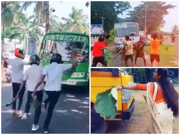 നില്ല് നില്ല്.. നില്ല് നില്ലെന്റെ നീലക്കുയിലേ.. പച്ചിലയേന്തി വണ്ടി തടഞ്ഞ് റോഡിൽ തുള്ളിക്കളി വൈറൽ