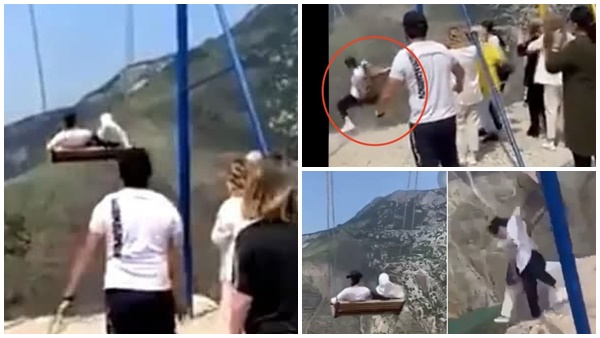 റഷ്യന് റിപബ്ലിക് ഓഫ് ദഗിസ്താനിലെ സുലക് കന്യോന് എന്ന പ്രദേശത്തുള്ള മലമുകളിലാണ് സംഭവം നടന്നത്. ഒരുപാട് പേരുള്ള സംഘമാണ് ഇവിടെ എത്തിയത്. വളരെ സന്തോഷത്തിലാണ് ഇവര് എന്ന് വീഡിയോയില് വ്യക്തമാണ്. മലയുടെ അറ്റത്താണ് ഊഞ്ഞാല് സ്ഥാപിച്ചിരിക്കുന്നത്.