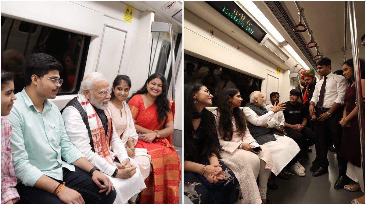 ഡൽഹി മെട്രോയിൽ യാത്രക്കാരനായി പ്രധാനമന്ത്രി, യുവാക്കളോട് കുശലം പറഞ്ഞ് യാത്ര, വൈറൽ