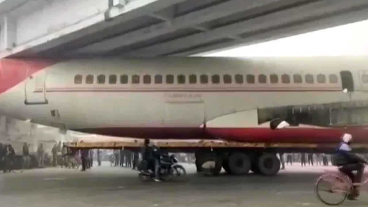 ബീഹാറിലെ മോത്തിഹാരിയിലെ പാലത്തിനടിയിലാണ് വിമാനം കുടുങ്ങിയത്. വിമാനം കുടുങ്ങിയതോടെ ഗതാഗത തടസ്സം ഉണ്ടായി. മുംബൈയിൽ നിന്ന് അസമിലേക്ക് ട്രെയിലർ ട്രക്കിൽ കൊണ്ടുപോകുന്ന വഴിയാണ് പിപ്രകോത്തി മേഖലയിൽ മേൽപ്പാലത്തിനടിയിൽ വിമാനം കുടുങ്ങി ഗതാഗതം സ്തംഭിച്ചത്.