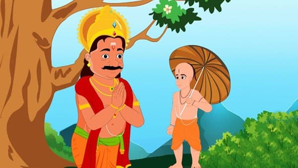 ദാനശീലത്തിന് പേരുകേട്ട മഹാബലി അദ്ദേഹത്തോട് സഹായം അഭ്യർത്ഥിച്ച് ചെല്ലുന്ന ആർക്കും ധാരാളം സഹായങ്ങൾ ചെയ്ത് നൽകുന്ന വ്യക്തിയായിരുന്നു. ഇത് മനസ്സിലാക്കിയ മഹാവിഷ്ണു മഹാബലിയെ ഒന്ന് പരീക്ഷിക്കാനായി വാമനൻ എന്ന് പേരുള്ള ഒരു കുള്ളൻ ബ്രാഹ്മണനായി അവതാരമെടുത്തുകൊണ്ട് മഹാബലിയുടെ രാജ്യത്തേക്ക് എത്തി. പ്രഭാതസമയത്തെ പ്രാർത്ഥനകൾ കഴിഞ്ഞ് ബ്രാഹ്മണർക്ക് ദാനം നൽകാനുള്ള തയ്യാറെടുപ്പിൽ ആയിരുന്നു മഹാബലി അപ്പോൾ. ഈ സമയത്ത് തനിക്ക് മുൻപിലെത്തിയ ദരിദ്രനായ വാമനനോട് ദാനമായി എന്താണ് വേണ്ടത് എന്ന് മഹാബലി ചോദിച്ചു. തനിക്ക് കുറച്ച് ഭൂമി മാത്രം മതിയെന്നായിരുന്നു വാമന്റെ മറുപടി. അതോടെ എത്രത്തോളം ഭൂമി വേണമെന്നായി മഹാബലിയുടെ ചോദ്യം. തന്റെ കാലുകൊണ്ട് മൂന്നടി അളന്നെടുക്കാവുന്നത്രയും ഭൂമി മാത്രം മതിയെന്ന് വാമനൻ പറഞ്ഞു. ആദ്യം മഹാബലിയ്ക്ക് അൽപ്പം ആശ്ചര്യം തോന്നിയെങ്കിലും വാമനന്റെ മുന്നോട്ടുവെച്ച ആവശ്യം അദ്ദേഹം അംഗീകരിച്ചിരുന്നു.